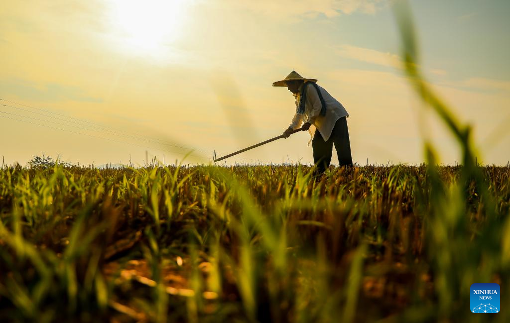 A farmer weeds in the field at Shanting District of Zaozhuang City, east China's Shandong Province, July 7, 2025. Seizing the farming season, farmers were busy in the fields during Lesser Heat, the 11th solar term that falls on Monday this year, marks the beginning of a hot season. (Photo by Zhang Qiang/Xinhua)