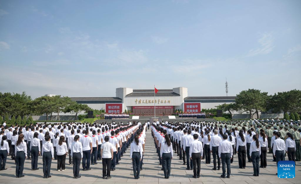 This photo taken on July 7, 2025 shows a ceremony to mark the 88th anniversary of the start of the entire nation's resistance against Japanese aggression, in Beijing, capital of China. China on Monday held a ceremony to mark the 88th anniversary of the start of the entire nation's resistance against Japanese aggression.
