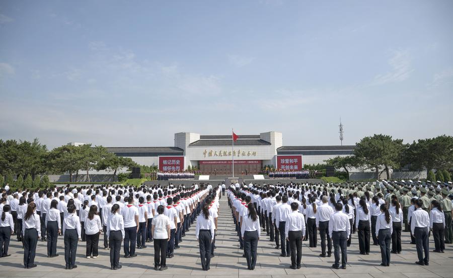 This photo taken on July 7, 2025 shows a ceremony to mark the 88th anniversary of the start of the entire nation's resistance against Japanese aggression, in Beijing, capital of China. China on Monday held a ceremony to mark the 88th anniversary of the start of the entire nation's resistance against Japanese aggression. An exhibition themed "For National Liberation and World Peace" was also launched to commemorate the victory in the Chinese People's War of Resistance Against Japanese Aggression and the World Anti-Fascist War. Both the ceremony and the exhibition were held at the Museum of the War of Chinese People's Resistance Against Japanese Aggression, located near the Lugou Bridge -- also known as the Marco Polo Bridge -- where Japanese troops attacked Chinese forces on July 7, 1937, marking the beginning of their full-scale invasion of China. (Xinhua/Cai Yang)An aerial drone photo taken on July 7, 2025 shows a view of the Tengwang Pavilion scenic area in the morning light in Nanchang City, east China's Jiangxi Province. The Tengwang Pavilion, the 29th iteration in its 1,400-year history, features intricately carved beams and vibrantly painted rafters. It stands majestically along the banks of the Ganjiang River, which winds through eastern China's Jiangxi Province. About 90 percent of the scenic area has been open to the public for free as of Jan. 1 this year when a northward expansion project was fully completed. (Xinhua/Liu Jinhai)A farmer weeds in the field at Shanting District of Zaozhuang City, east China's Shandong Province, July 7, 2025. Seizing the farming season, farmers were busy in the fields during Lesser Heat, the 11th solar term that falls on Monday this year, marks the beginning of a hot season. (Photo by Zhang Qiang/Xinhua)Staff members operate at an assembly line of the north China base of FAW-Volkswagen in north China's Tianjin, July 7, 2025. (Xinhua/Zhao Zishuo)Children try a racing game at Anhui Science and Technology Museum in Hefei, east China's Anhui Province, on July 6, 2025. (Photo by Chen Sanhu/Xinhua)Palestinians carry out rescue operations following an Israeli airstrike in Gaza City, July 6, 2025. At least 43 Palestinians were killed in Israeli attacks across the Gaza Strip on Sunday, the Civil Defense in Gaza said. (Photo by Mahmoud Zaki/Xinhua)Wrestlers compete at the 664th Oil Wrestling Competition in Edirne, Türkiye, on July 5, 2025. This unique wrestling has a history of hundreds of years. The contestants are shirtless, wearing only special leather pants, smearing olive oil all over their bodies, and competing on the slippery field. The main way to win is to press the opponent's back to the ground or tear his leather pants. (Xinhua/Liu Lei)McLaren's British driver Lando Norris celebrates with his trophy during the awarding ceremony after the Formula One British Grand Prix 2025 at the Silverstone Circuit in London, Britain, July 6, 2025. (Xinhua/Li Ying)■