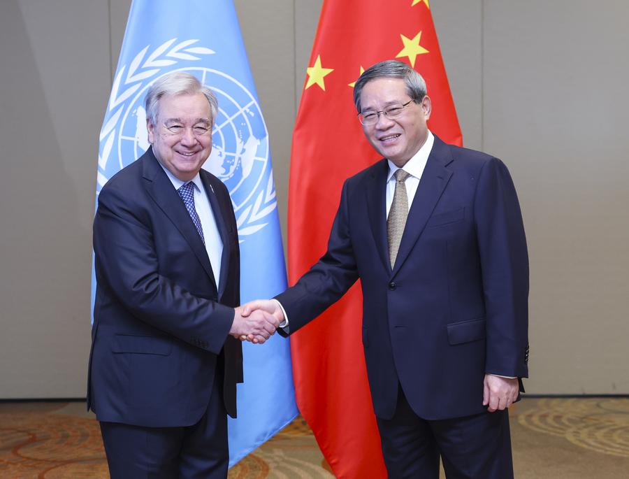Li made the remarks in his meeting with UN Secretary-General Antonio Guterres on the sidelines of the 17th BRICS Summit.