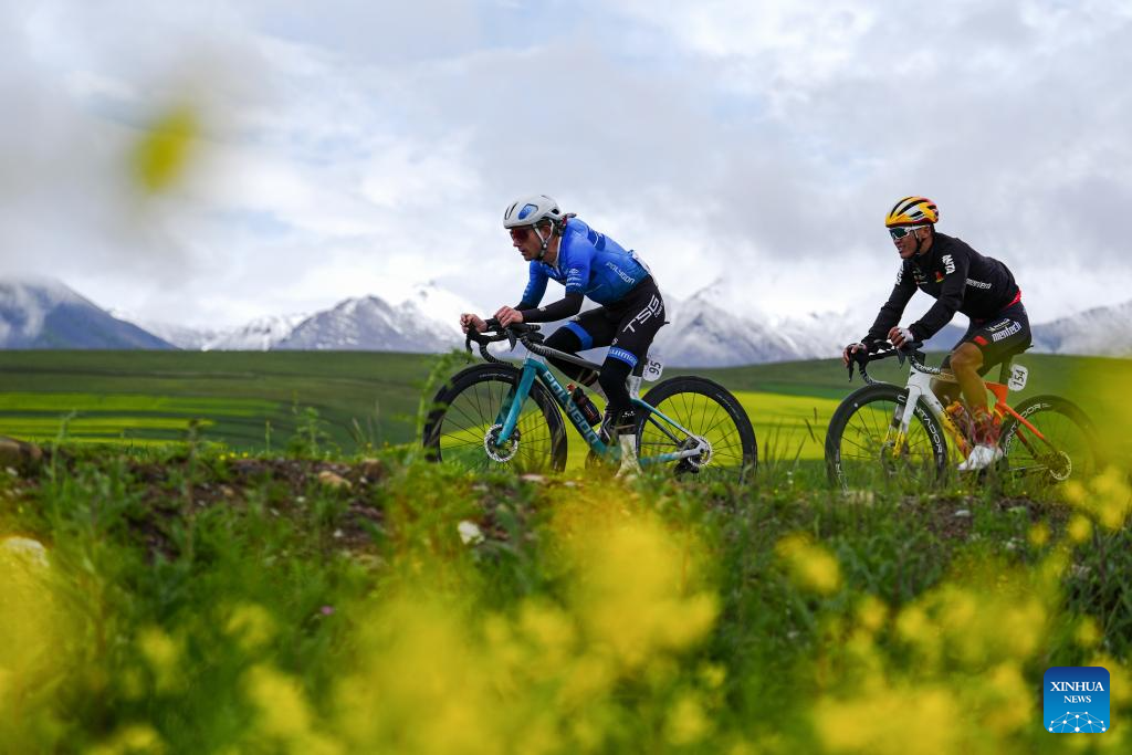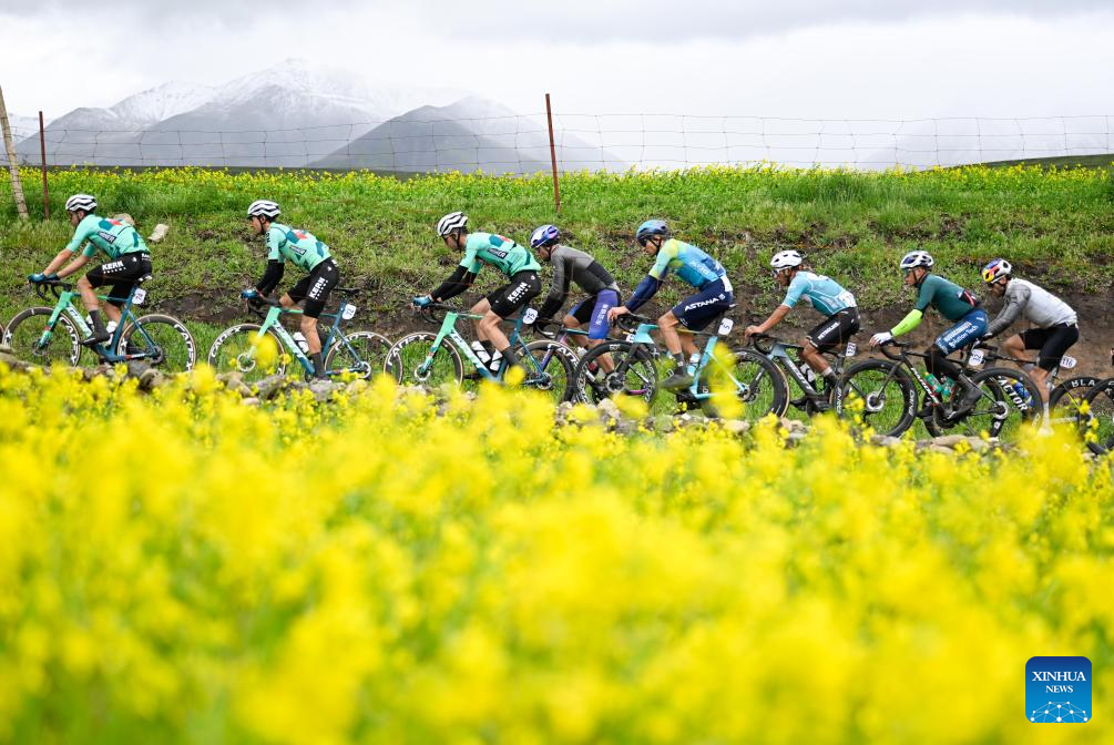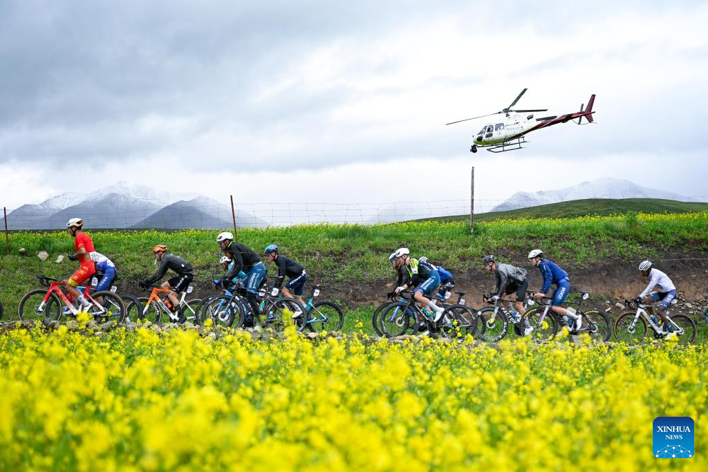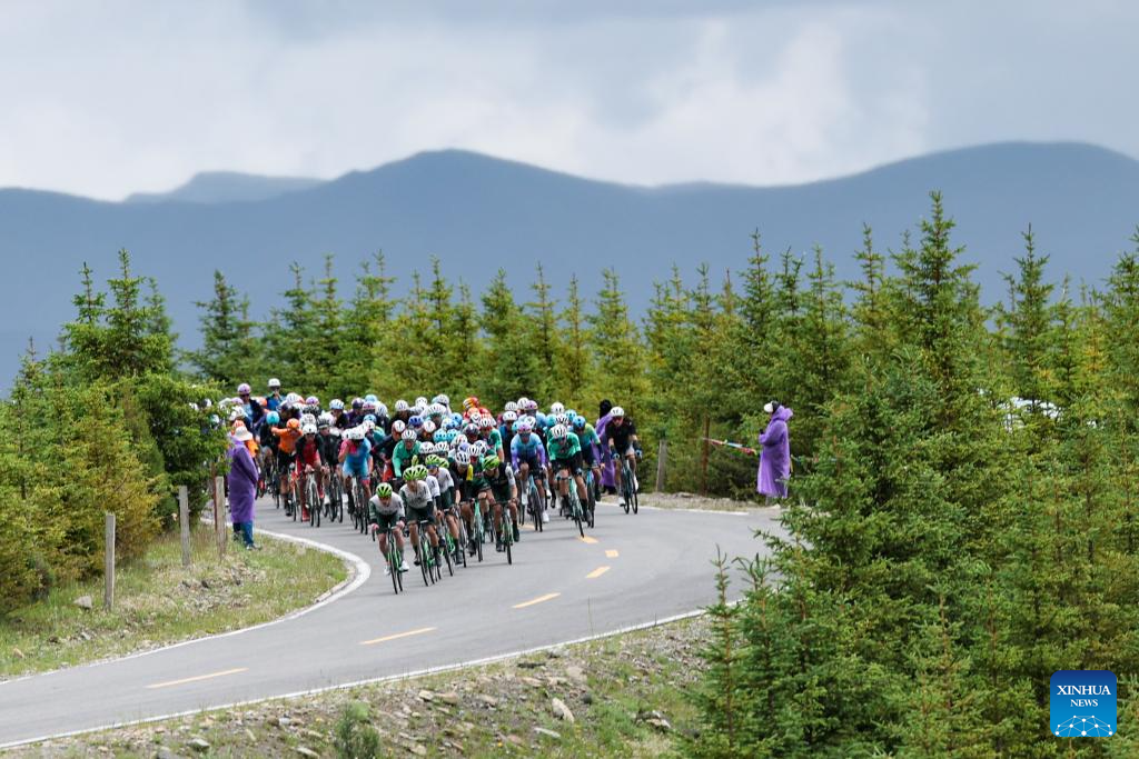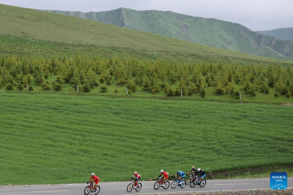 Cyclists compete during the Stage 3 of the Tour of Magnificent Qinghai International Road Cycling Race from Huzhu to Menyuan, northwest China's Qinghai Province, July 8, 2025. (Xinhua/Zhang Long)