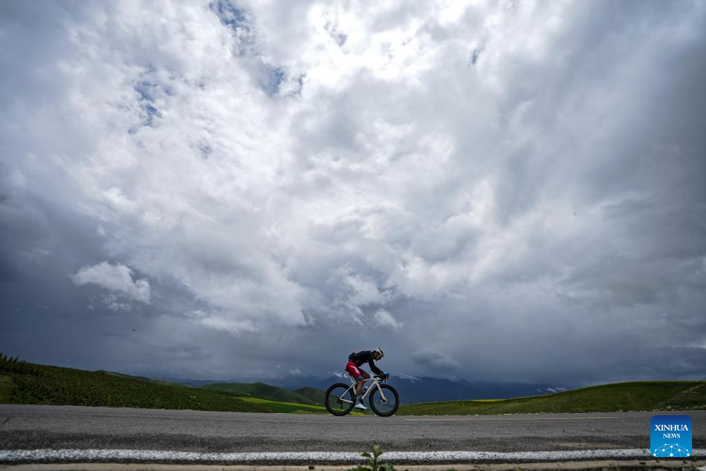 Simon Peliaud of Li Ning Star competes during the Stage 3 of the Tour of Magnificent Qinghai International Road Cycling Race from Huzhu to Menyuan, northwest China's Qinghai Province, July 8, 2025. (Xinhua/Qi Zhiyue)