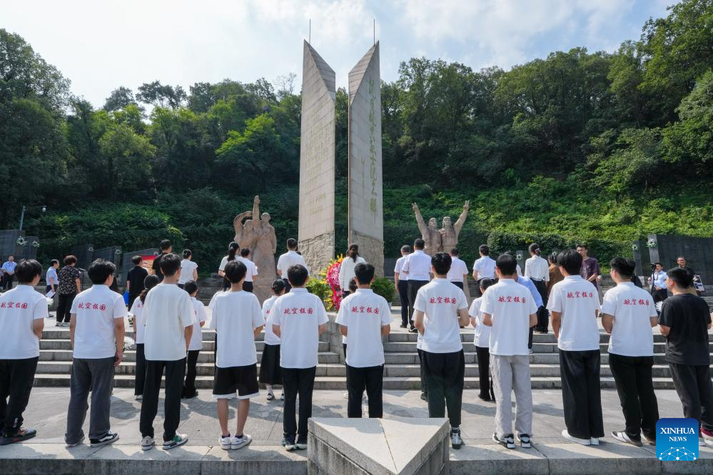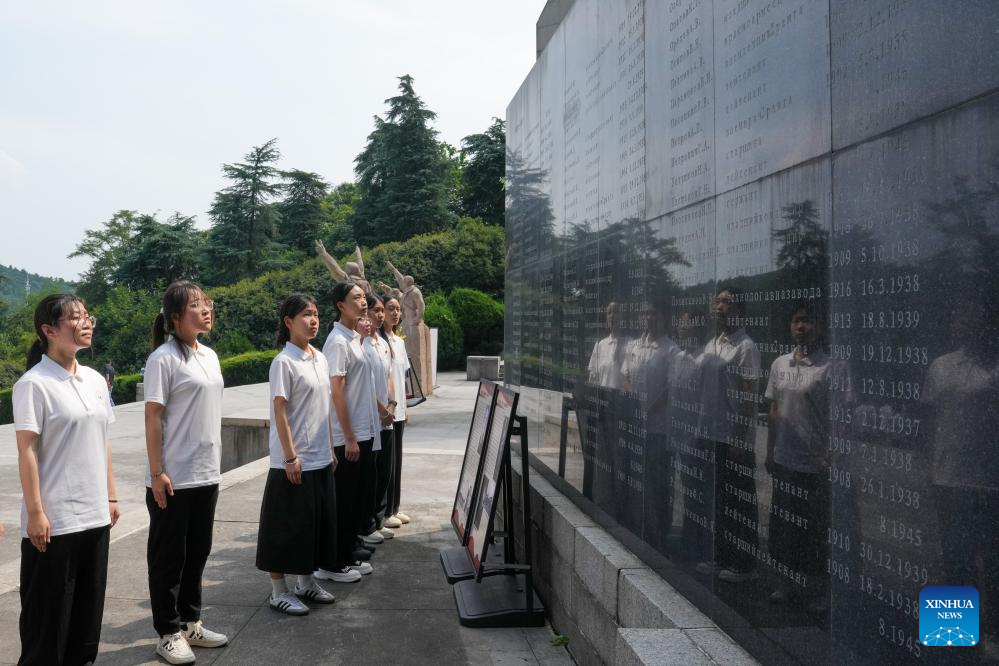 Visitors view a monument to martyrs at the Nanjing Anti-Japanese Aviation Martyrs Memorial Hall in Nanjing, east China's Jiangsu Province, on July 7, 2025. A series of commemorative events and exhibitions marking the 80th anniversary of the victory in the Chinese People's War of Resistance Against Japanese Aggression and the World Anti-Fascist War were held here on Monday. (Xinhua/Li Bo)