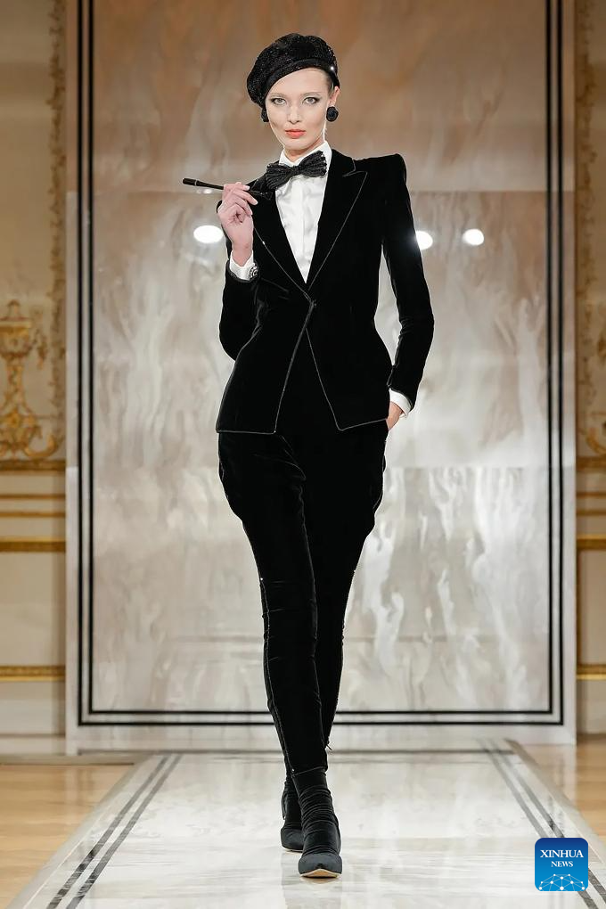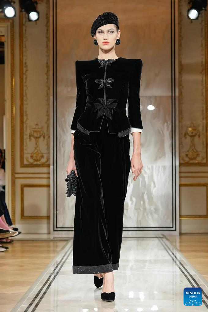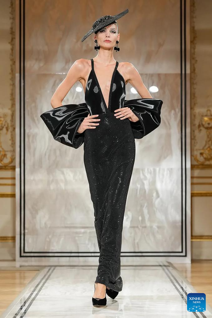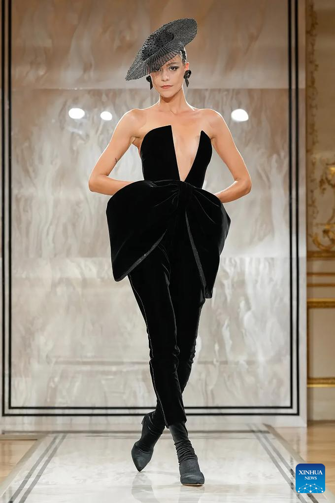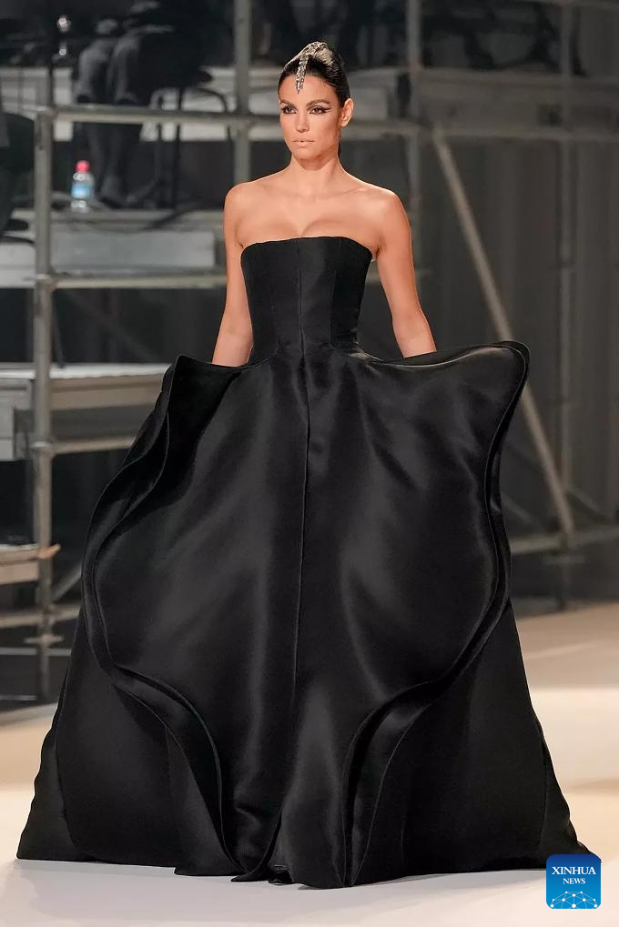A model presents a creation from the haute couture Fall-Winter 2025/2026 collections by Stephane Rolland during the Paris Haute Couture Week, in Paris, France, on July 8, 2025. (MeetEurope/Handout via Xinhua)
