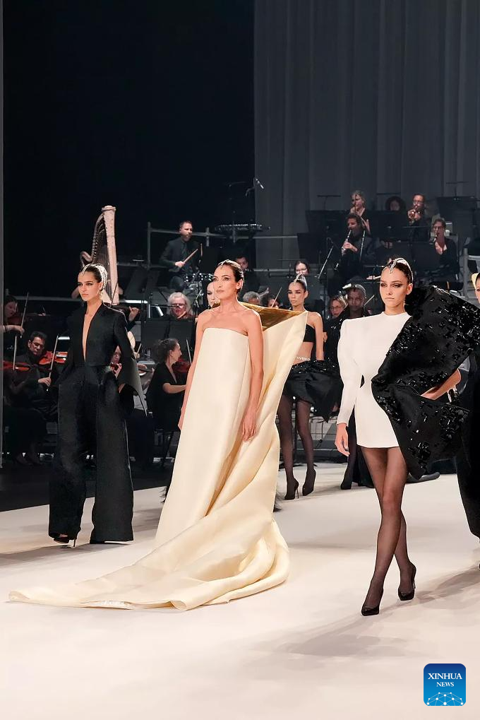 Models present creations from the haute couture Fall-Winter 2025/2026 collections by Stephane Rolland during the Paris Haute Couture Week, in Paris, France, on July 8, 2025. (MeetEurope/Handout via Xinhua)