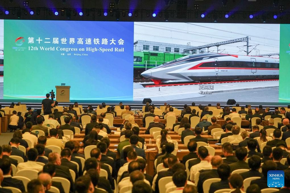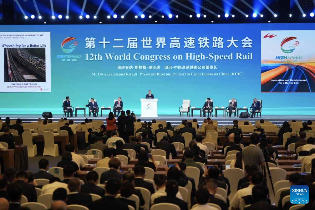 Guests attend the 12th World Congress on High-Speed Rail in Beijing, capital of China, July 8, 2025. Themed "High-Speed Rail: Innovation and Development for a Better Life", the congress opened here on July 8. More than 2,000 participants, including railway technical personnel, enterprise leaders, government officials, and representatives from international organizations, attended the opening ceremony. (Xinhua/Xing Guangli)