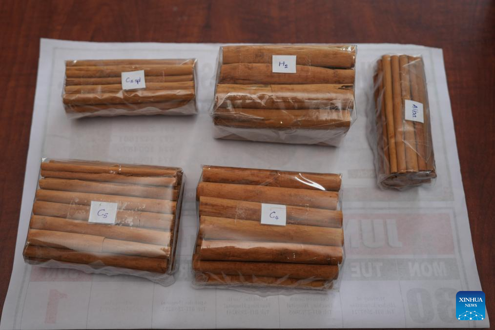 This photo taken on July 9, 2025 shows processed cinnamon in Galle, Sri Lanka. Sri Lanka aims to make cinnamon the country's foremost export-oriented plantation crop. (Photo by Thilina Kaluthotage/Xinhua)