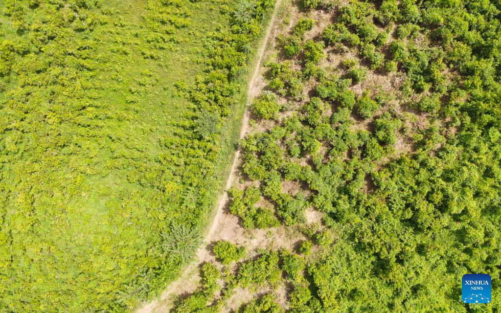 An aerial drone photo taken on July 9, 2025 shows a cinnamon plantation in Galle, Sri Lanka. Sri Lanka aims to make cinnamon the country's foremost export-oriented plantation crop. (Photo by Thilina Kaluthotage/Xinhua)