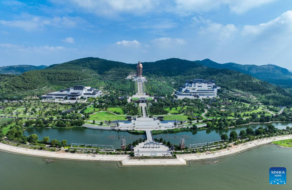 An aerial drone photo shows an exterior view of the venue for the 11th Nishan Forum on World Civilizations in Qufu, east China's Shandong Province, July 9, 2025. The 11th Nishan Forum on World Civilizations kicked off on Wednesday with the theme of "Beauty in Diversity: Nurturing Understanding Among Civilizations for Global Modernization."
