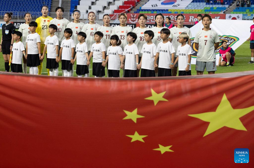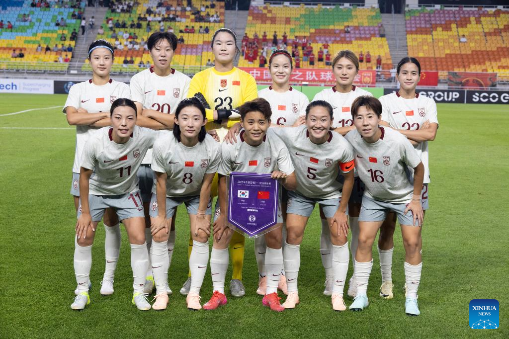 Players of China are seen ahead of the women's football match between China and South Korea at the EAFF (East Asian Football Federation) E-1 Football Championship 2025 Final in Suwon, South Korea, July 9, 2025. (Photo by Jun Hyosang/Xinhua)