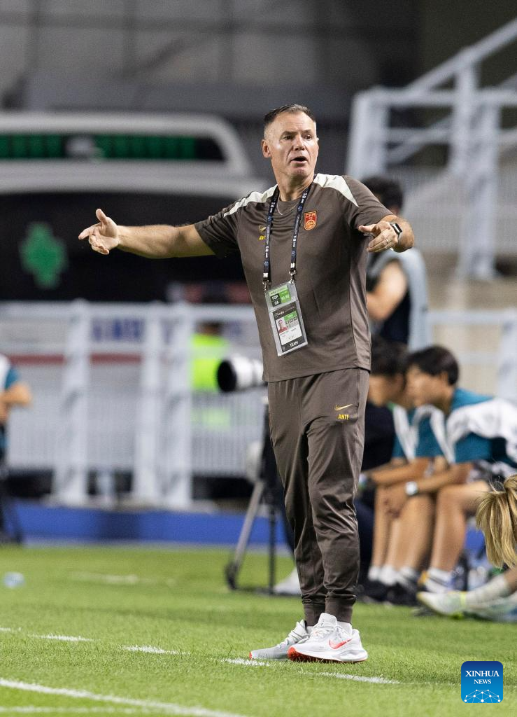 China's head coach Anthony Josip Milicic gestures during the women's football match between China and South Korea at the EAFF (East Asian Football Federation) E-1 Football Championship 2025 Final in Suwon, South Korea, July 9, 2025. (Photo by Jun Hyosang/Xinhua)