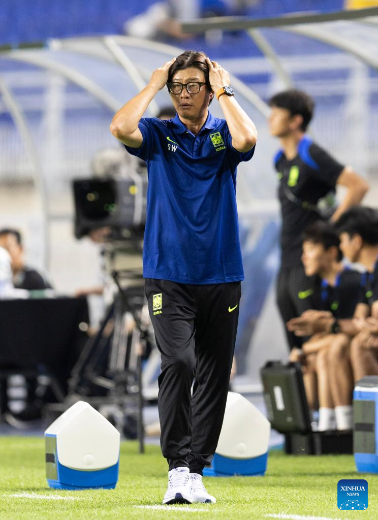 South Korea's head coach Shin Sang-Woo gestures during the women's football match between China and South Korea at the EAFF (East Asian Football Federation) E-1 Football Championship 2025 Final in Suwon, South Korea, July 9, 2025. (Photo by Jun Hyosang/Xinhua)