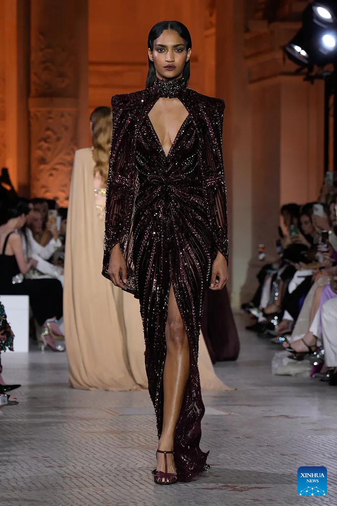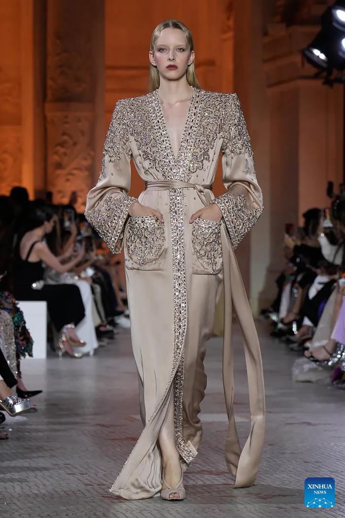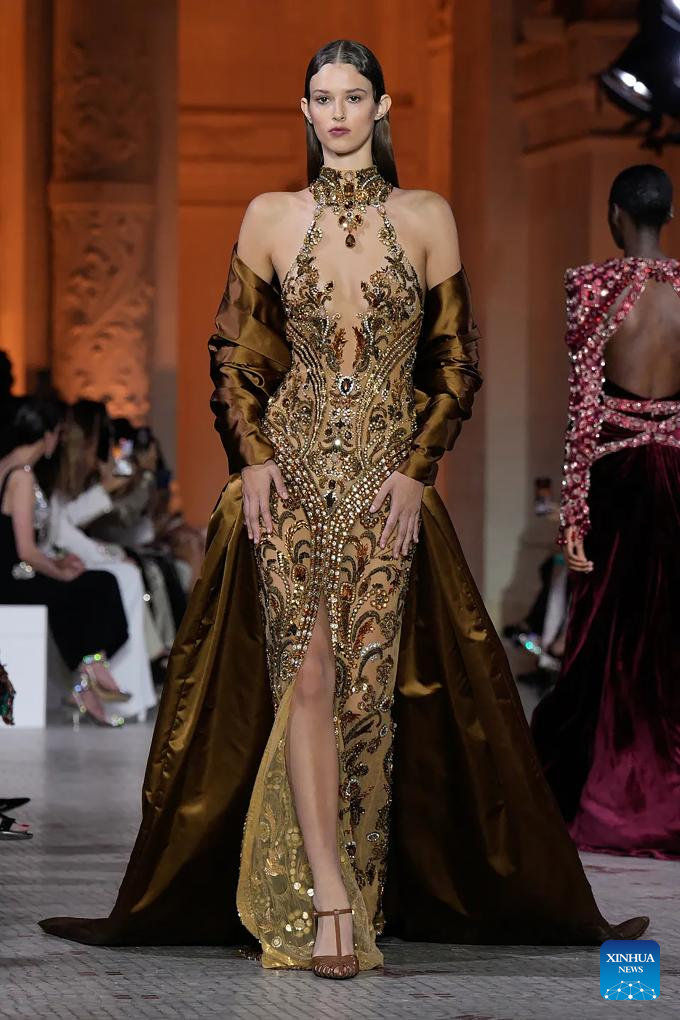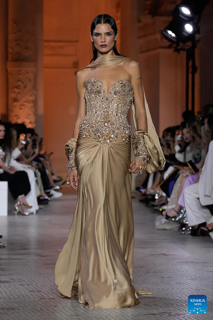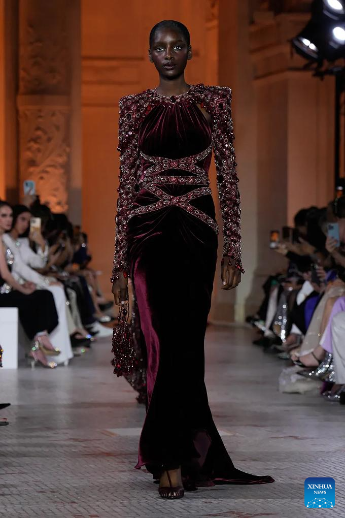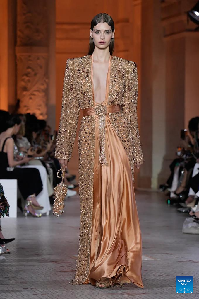 A model presents a creation from the haute couture Fall-Winter 2025/2026 collections by Zuhair Murad during the Paris Haute Couture Week, in Paris, France, on July 9, 2025. (MeetEurope/Handout via Xinhua)