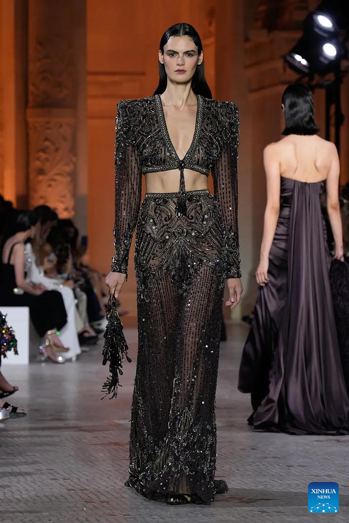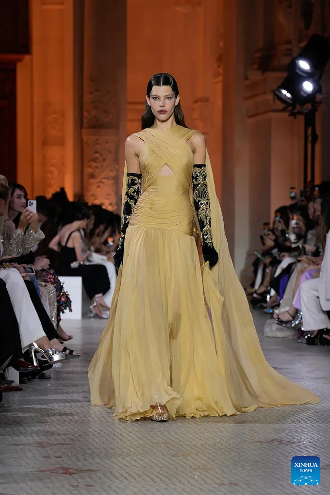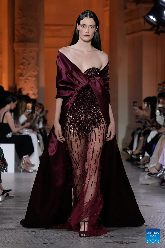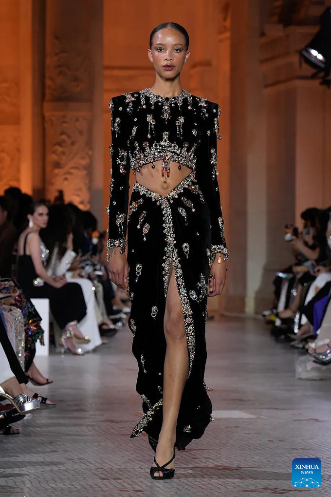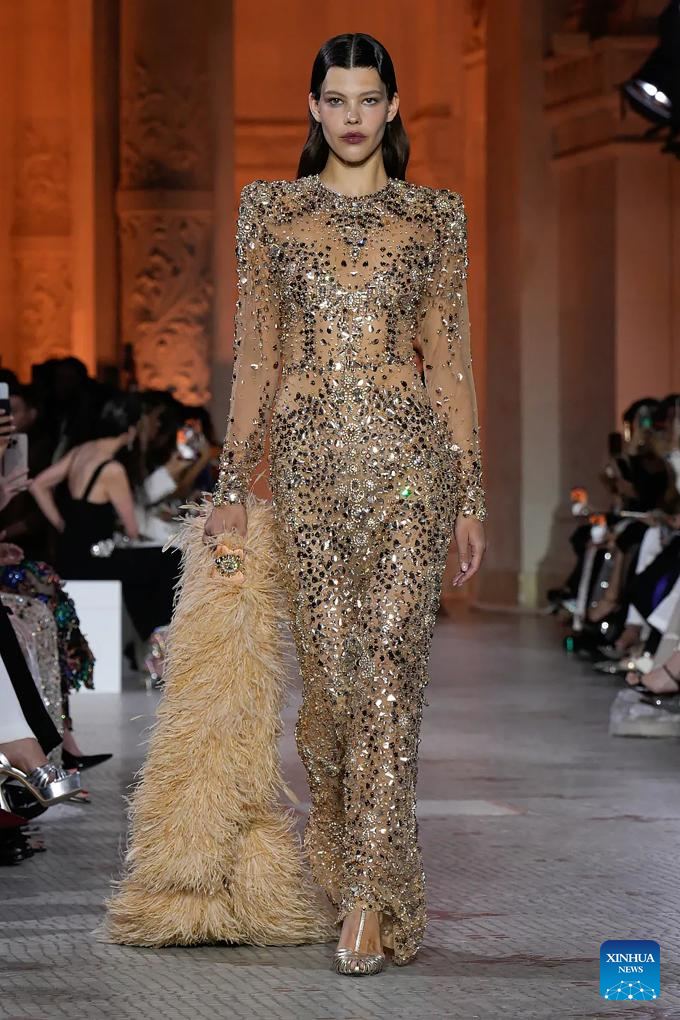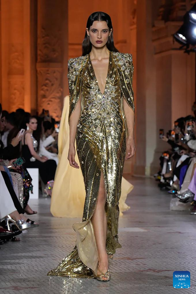 A model presents a creation from the haute couture Fall-Winter 2025/2026 collections by Zuhair Murad during the Paris Haute Couture Week, in Paris, France, on July 9, 2025. (MeetEurope/Handout via Xinhua)
