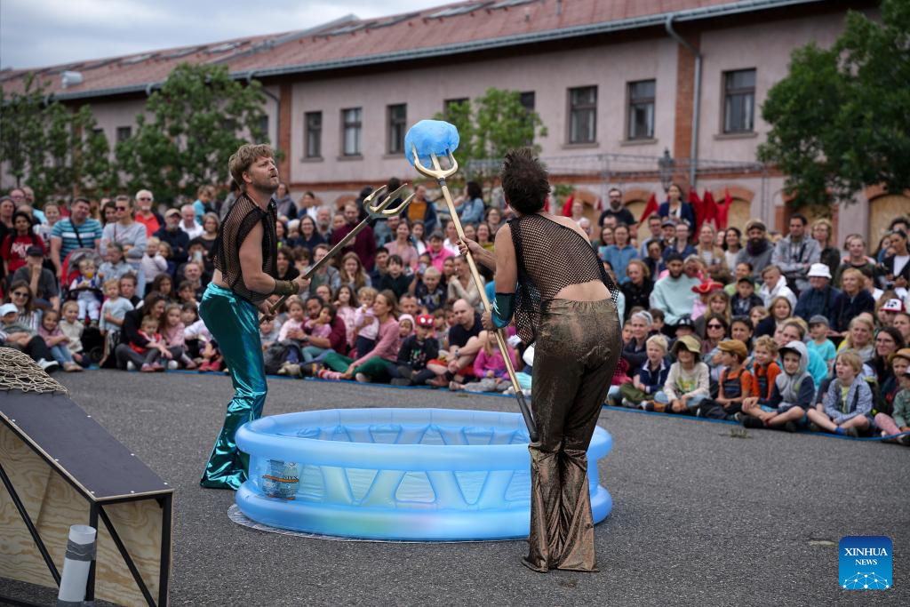 Artists stage a street theatre performance during the Prague Street Theatre Festival in Prague, the Czech Republic, July 9, 2025. The week-long festival opened here on Wednesday. (Photo by Dana Kesnerova/Xinhua)