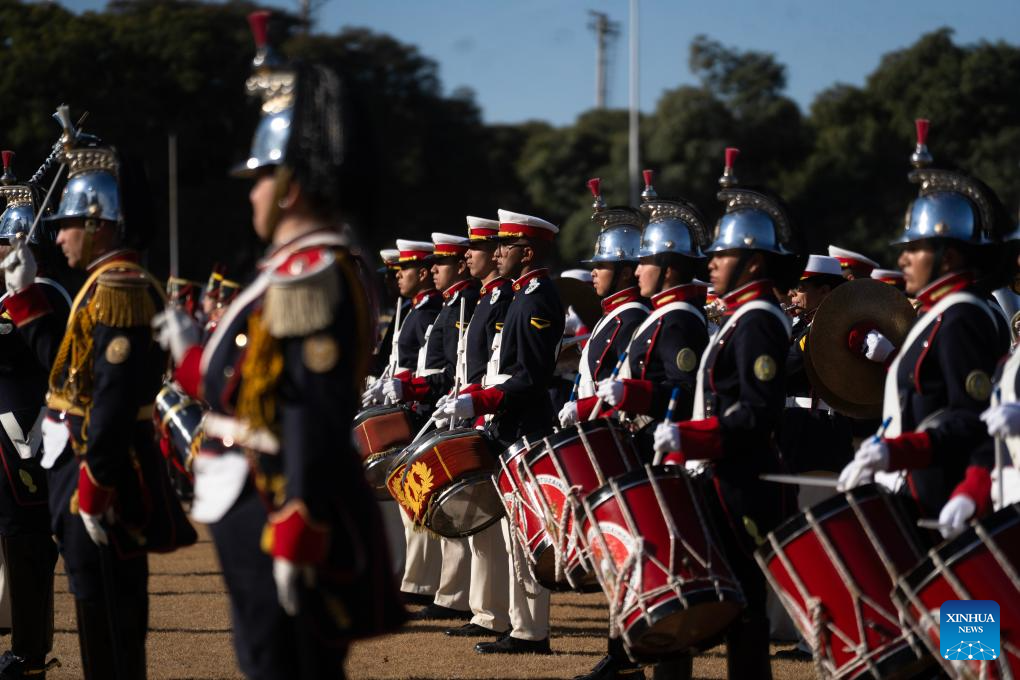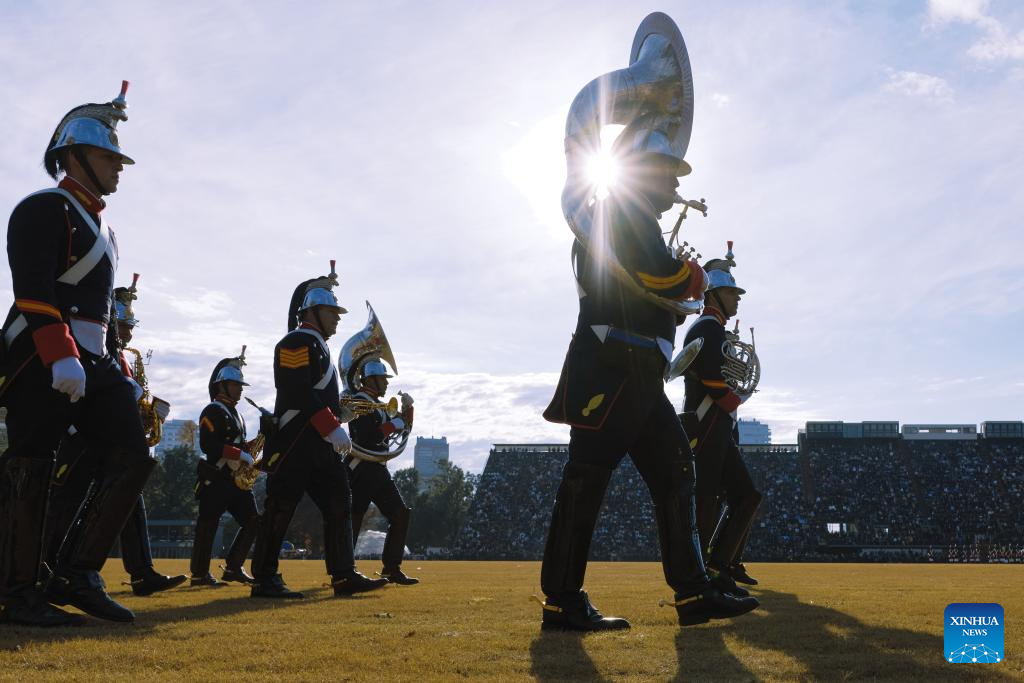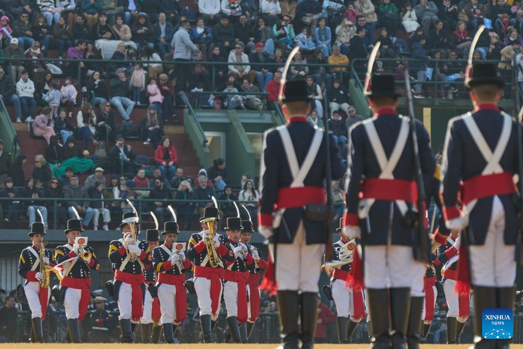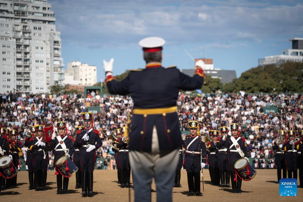 Members of military bands perform during a Military Bands Festival held to celebrate the 209th anniversary of Argentina's Independence Day in Buenos Aires, Argentina, on July 9, 2025. Argentina commemorated on Wednesday the 209th anniversary of its independence from Spanish rule. (Xinhua/Meng Dingbo)