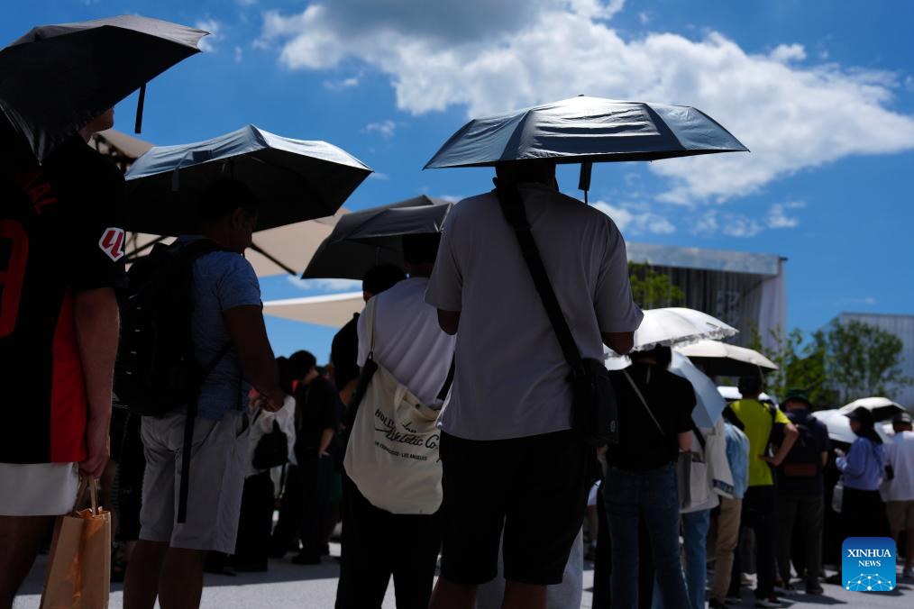 Tourists visit the Expo 2025 Osaka in Osaka, Japan, on July 10, 2025. Heatstroke alerts were issued in many places in Japan as the country is hit by a searing heatwave. (Xinhua/Jia Haocheng)