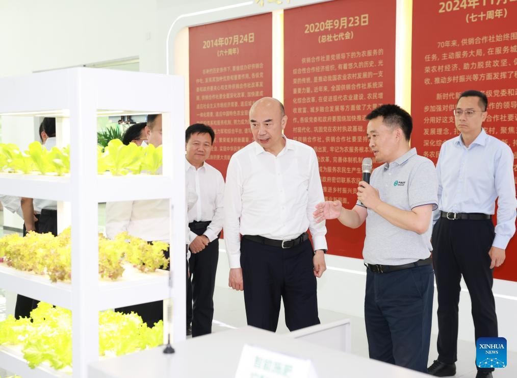 Chinese Vice Premier Liu Guozhong, also a member of the Political Bureau of the Communist Party of China Central Committee, visits an agricultural service center in Beijing, capital of China, July 9, 2025. Liu made a research tour in Beijing on Wednesday. (Xinhua/Ding Lin)