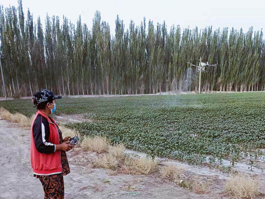The pilot received wary looks during her first drone spraying mission, which quickly turned to awe after a successful flight. "We women in Xinjiang can master high technology. My calculation of the proportion of pesticide solutions is far more accurate than my husband's."
