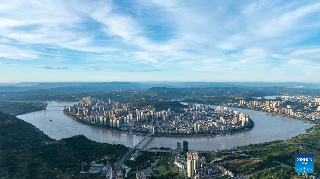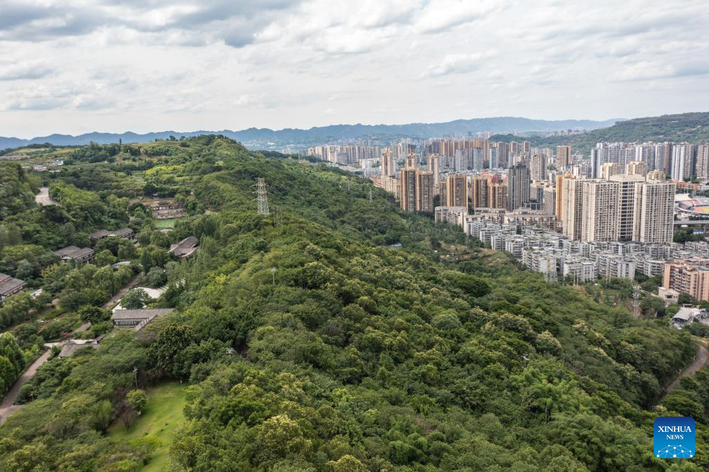 This aerial drone photo taken on July 3, 2025 shows the view of the urban area in Jiangjin District of southwest China's Chongqing Municipality.