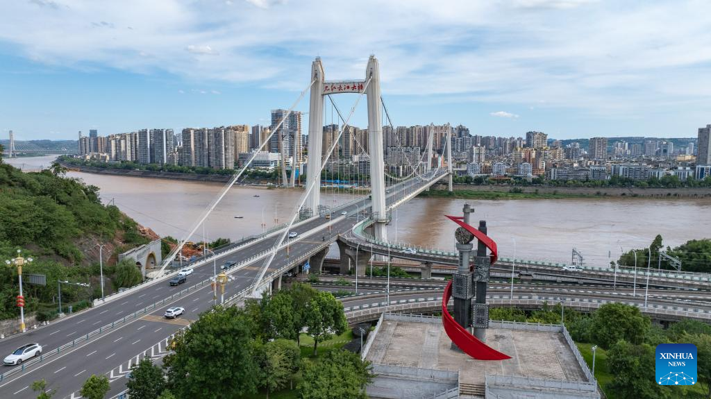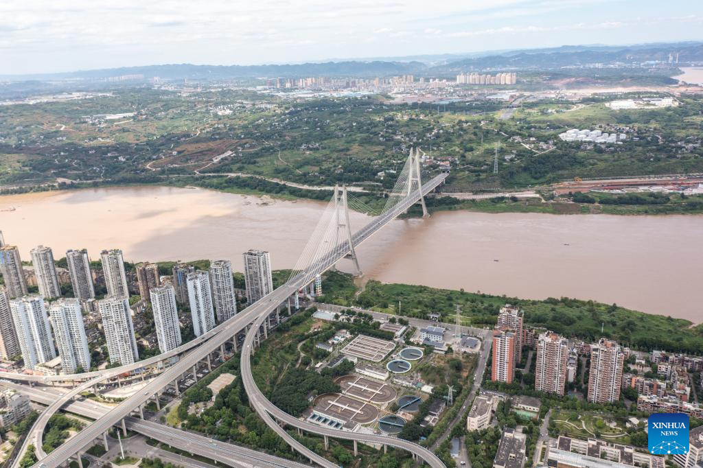 This aerial drone photo taken on July 3, 2025 shows the view of Jijiang Yangtze River bridge in Jiangjin District of southwest China's Chongqing Municipality.