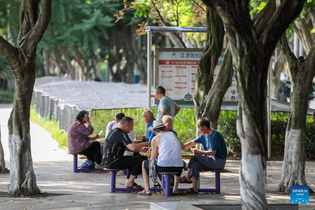 People rest on a river bank in Jiangjin District of southwest China's Chongqing Municipality, July 3, 2025.
