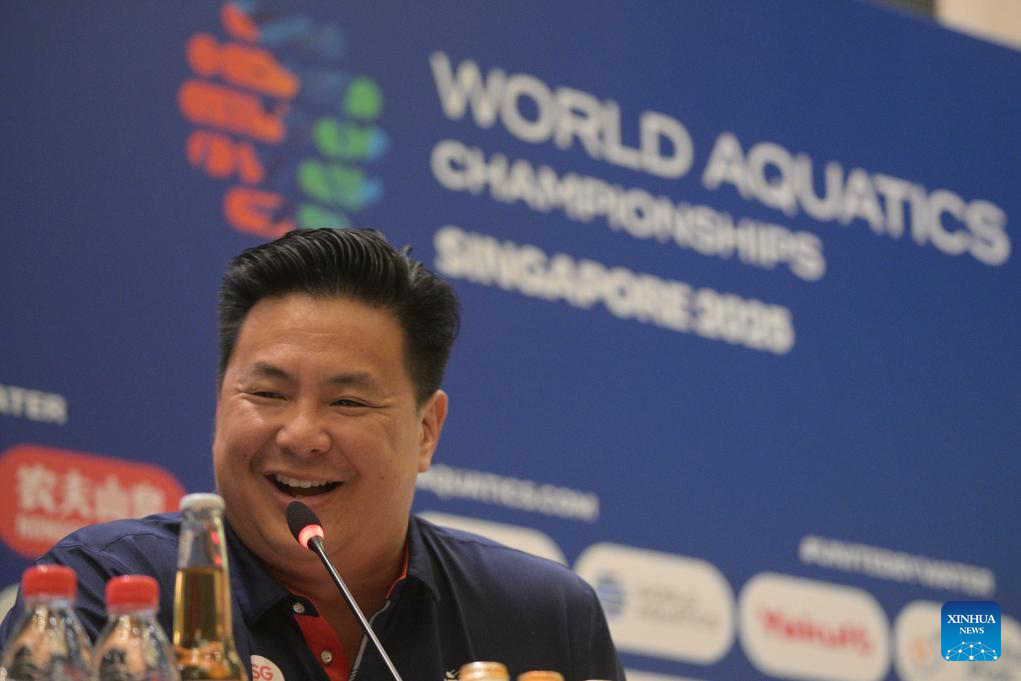 Co-Chairperson of Singapore 2025 Organising Committee Mark Chay attends the pre-competition press conference of the World Aquatics Championships 2025 held in Singapore on July 10, 2025. (Photo by Then Chih Wey/Xinhua)