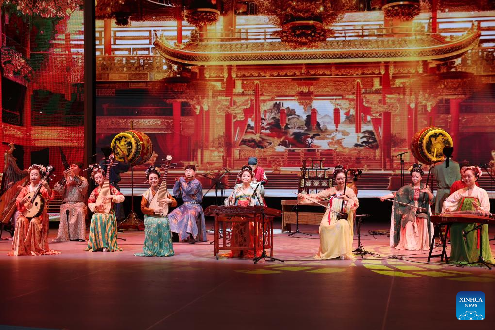 This photo taken on July 11, 2025 shows a performance for China's National Pavilion Day at Expo 2025 Osaka in Osaka, Japan. China's National Pavilion Day event kicked off at Expo 2025 Osaka on Friday. (Xinhua/Li Guangzheng)