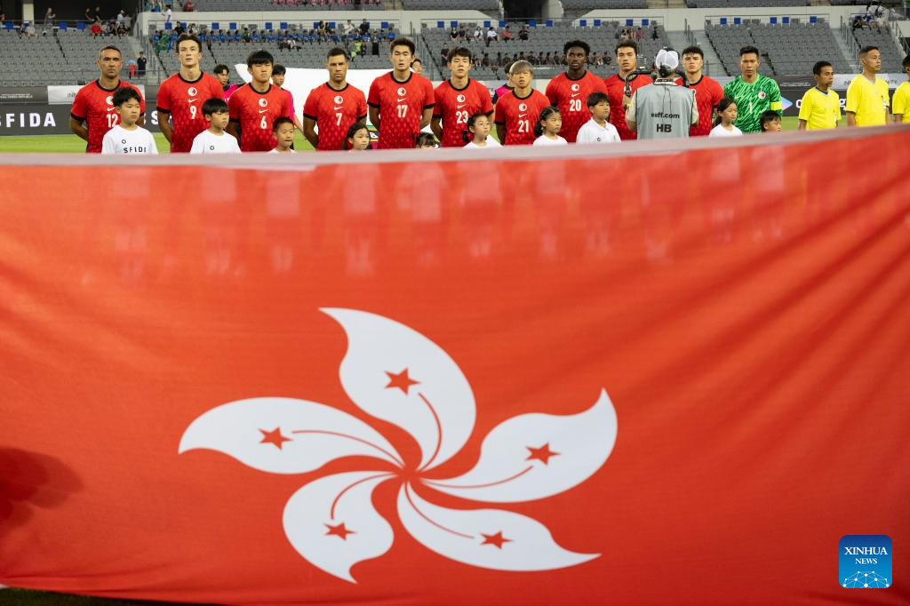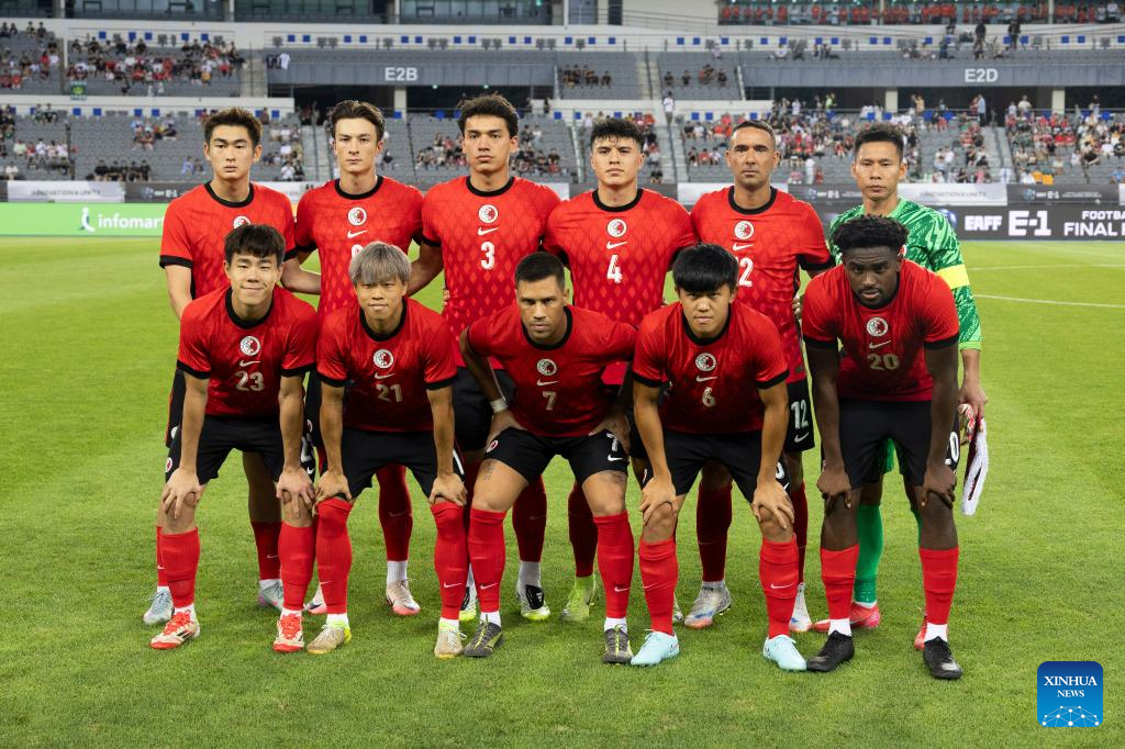 Players of China's Hong Kong pose for a group photo before the men's match between China's Hong Kong and South Korea at the EAFF (East Asian Football Federation) E-1 Football Championship 2025 Final in Yongin, South Korea, July 11, 2025. (Photo by Jun Hyosang/Xinhua)
