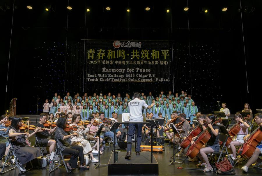 Youths from China and the United States rehearse at Fujian Grand Theater in Fuzhou, southeast China's Fujian Province, July 10, 2025. (Xinhua/Wei Peiquan)Youths from China and the United States sing during the opening ceremony of Bond with Kuliang: 2025 China-U.S. Youth Choir Festival, in Fuzhou, southeast China's Fujian Province, July 10, 2025. (Xinhua/Wei Peiquan)Choir members from China and the United States chat with each other after the opening ceremony of Bond with Kuliang: 2025 China-U.S. Youth Choir Festival, in Fuzhou, southeast China's Fujian Province, July 10, 2025. (Xinhua/Wei Peiquan)Youths from China and the United States rehearse at Fujian Grand Theater in Fuzhou, southeast China's Fujian Province, July 10, 2025. (Xinhua/Wei Peiquan)■