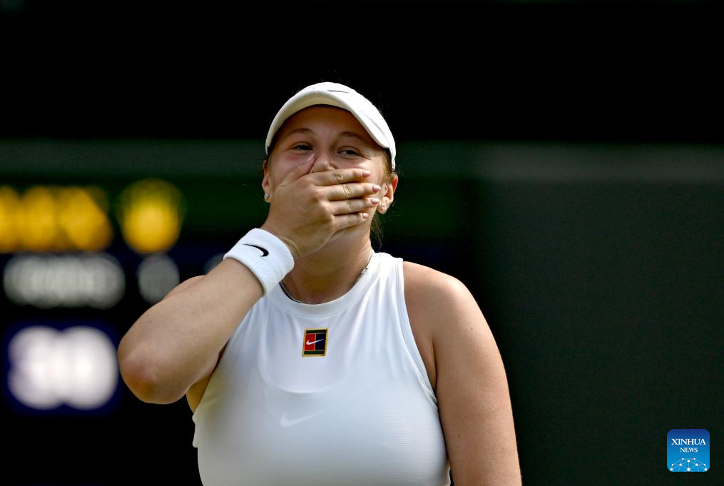 LONDON, July 10 (Xinhua) -- Amanda Anisimova of the United States delivered a stunning upset in a Wimbledon semifinal on Thursday, defeating top seed Aryna Sabalenka to secure her first-ever Grand Slam final berth.