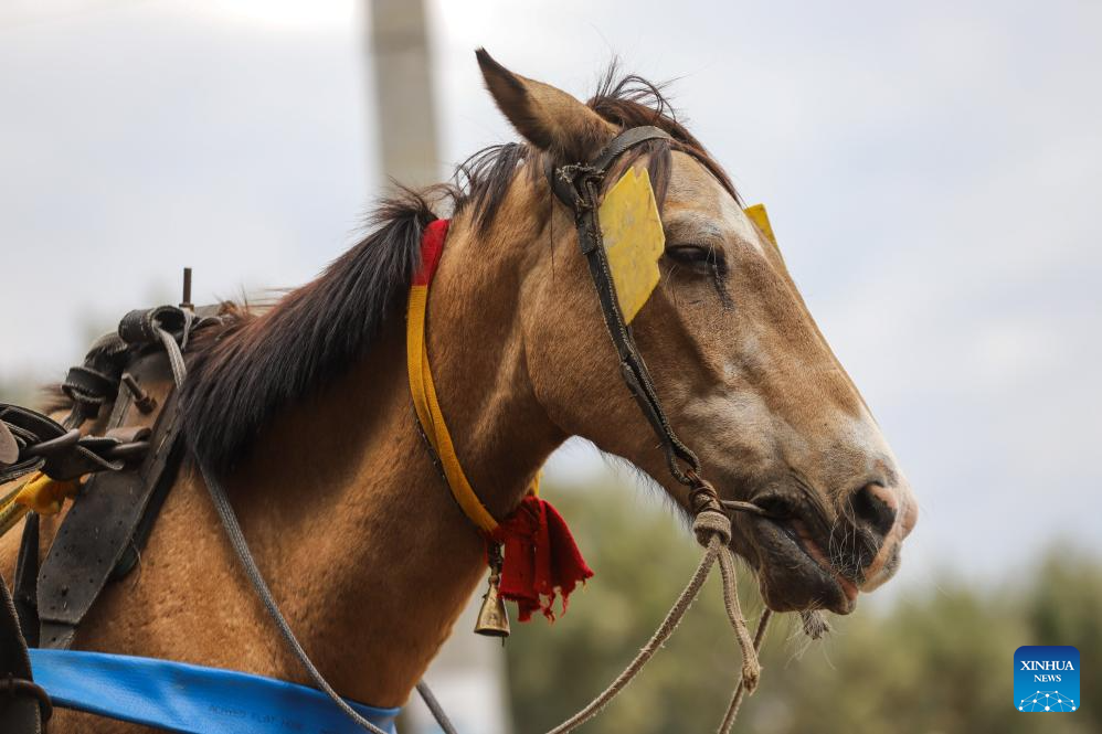 This photo taken on July 9, 2025 shows a horse in Addis Ababa, Ethiopia. The United Nations General Assembly adopted a resolution on June 3, 2025, declaring July 11 "World Horse Day" to celebrate the role of horses and to tackle the challenges they face in the modern world. (Xinhua/Michael Tewelde)