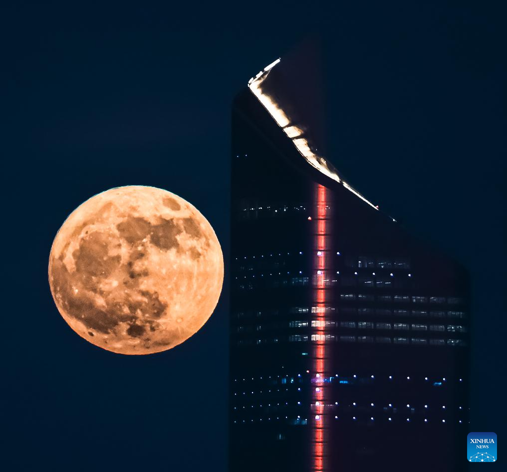 A full moon is seen in the sky over Kuwait City, Kuwait, on 10 July, 2025. (Photo by Asad/Xinhua)