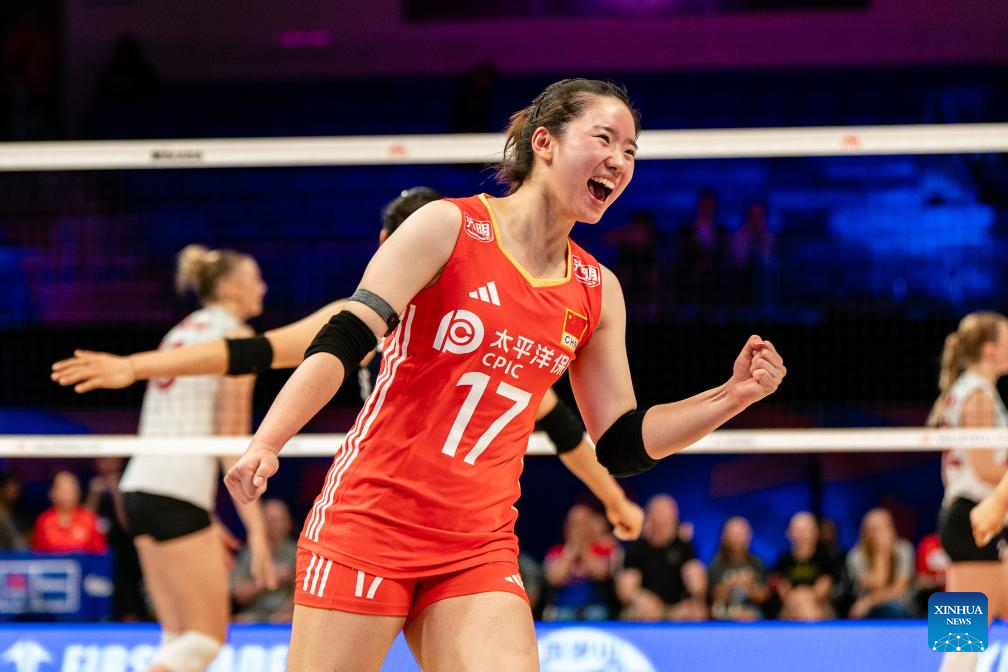 ARLINGTON, United States, July 11 (Xinhua) -- The final week of the Women's Volleyball Nations League (VNL) group stage continued Friday in Arlington, Texas, where China defeated Canada 3-1 (25-22, 25-15, 22-25, 25-23) in a hard-fought encounter.