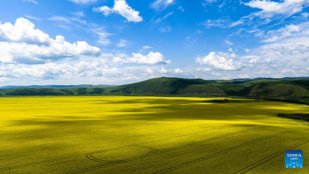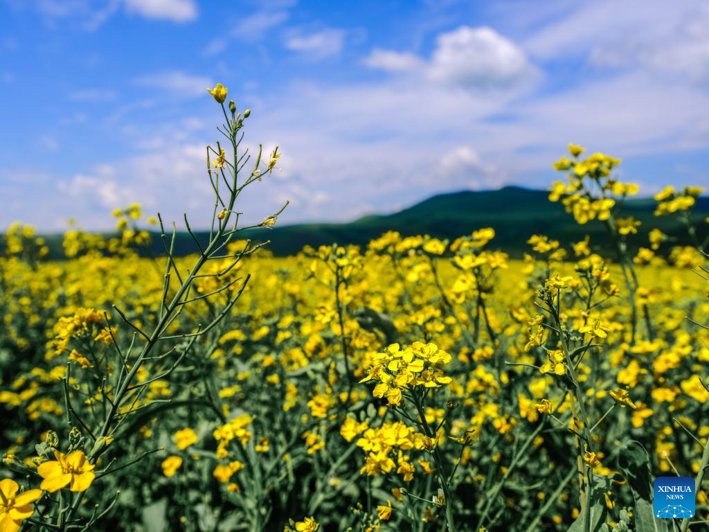 This photo shows rapeseed flowers in Ergun of Hulun Buir, north China's Inner Mongolia Autonomous Region, July 12, 2025. (Xinhua/Ma Jinrui)
