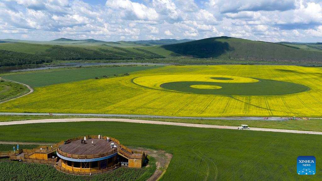 An aerial drone photo shows a rapeseed flower field in Ergun of Hulun Buir, north China's Inner Mongolia Autonomous Region, July 12, 2025. (Xinhua/Ma Jinrui)