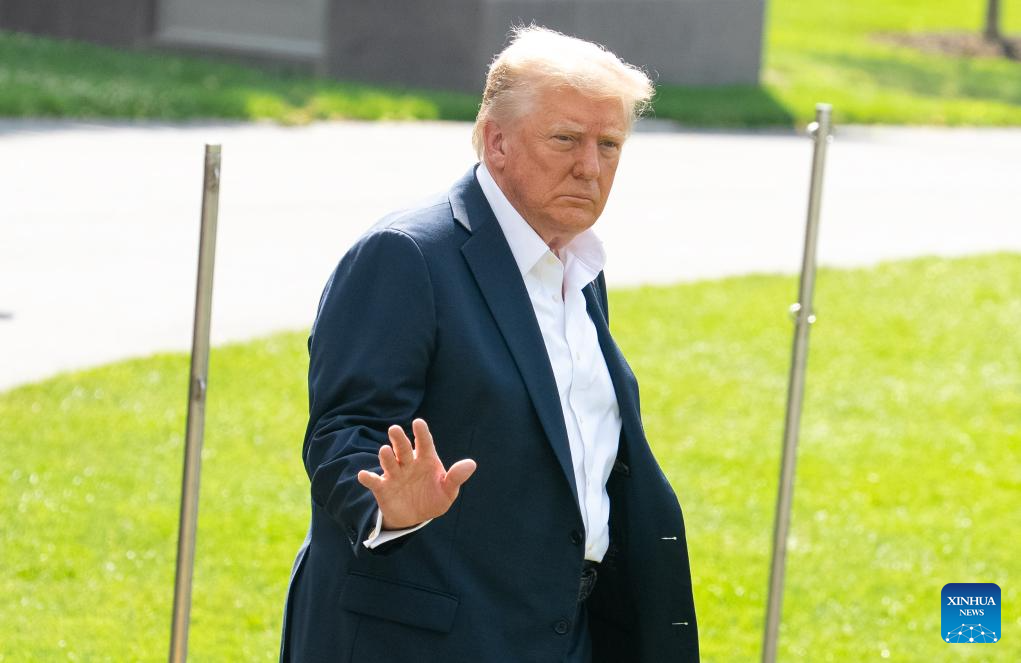 U.S. President Donald Trump waves to the press before departing for Texas at the White House in Washington, D.C., the United States, on July 11, 2025. It is not on the agenda of the White House to abolish the Federal Emergency Management Agency (FEMA) outright, The Washington Post on Friday cited an official source, as U.S. President Donald Trump travels to Texas to view the impact of last week's deadly floods. (Xinhua/Hu Yousong)