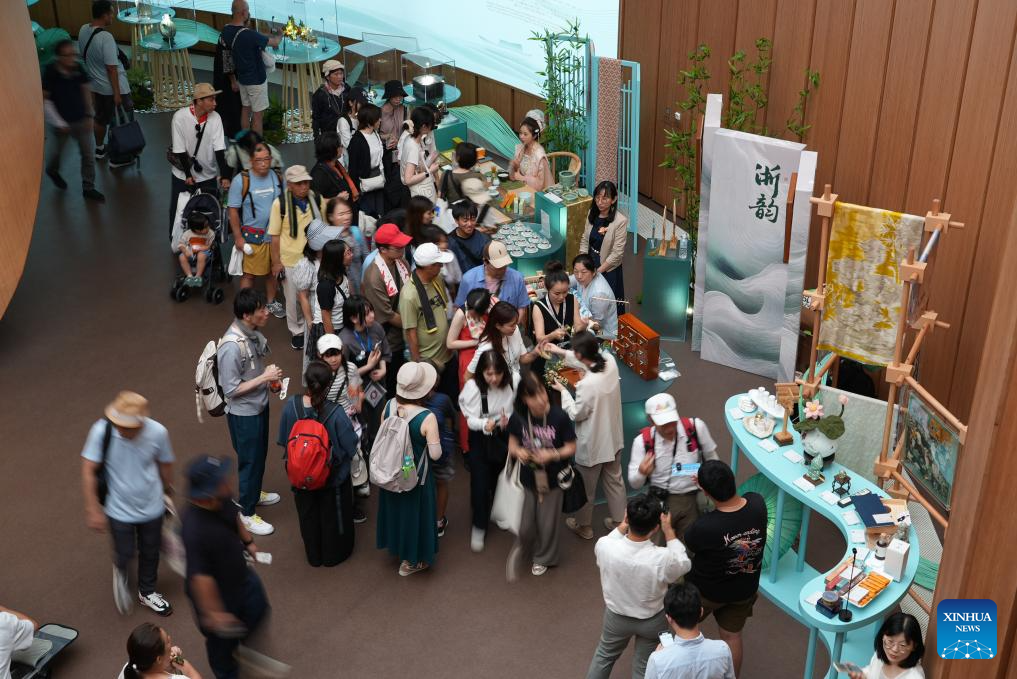 This photo taken on July 12, 2025 shows a scene of the "Zhejiang Week" of China Pavilion at the Expo 2025 Osaka in Osaka, Japan, on July 12, 2025. The "Zhejiang Week" of China Pavilion at the Expo 2025 Osaka kicked off on Saturday. (Xinhua/Li Guangzheng)