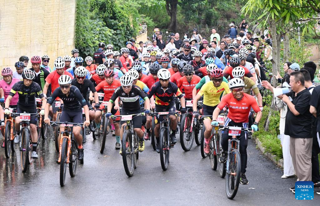 Enthusiasts attend a bike riding activity in Wenshan Zhuang and Miao Autonomous Prefecture, southwest China's Yunnan Province, July 12, 2025. Tourist destinations in Yunnan entered their peak tourism season as summer vacation began. (Photo by Xiong Pingxiang/Xinhua)