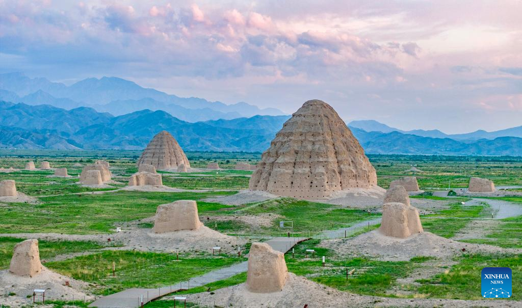 This photo taken on July 5, 2025 shows two Xixia imperial tombs in Yinchuan, northwest China's Ningxia Hui Autonomous Region. China's Xixia Imperial Tombs were officially added to the UNESCO World Heritage List on Friday during the 47th session of the World Heritage Committee held in Paris, France. The inscription brings the total number of World Heritage sites in China to 60. (Xinhua/Yang Zhisen)