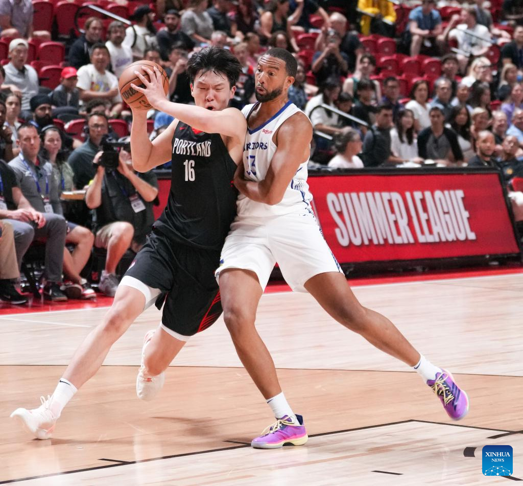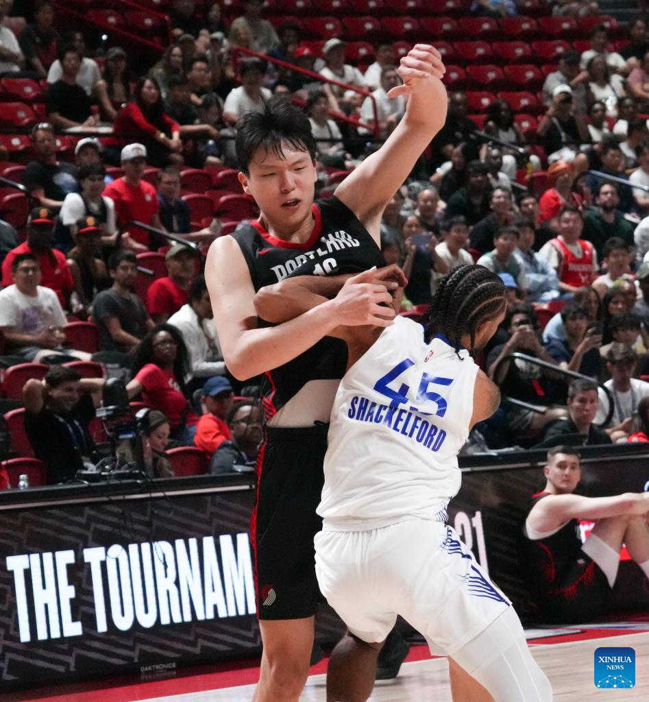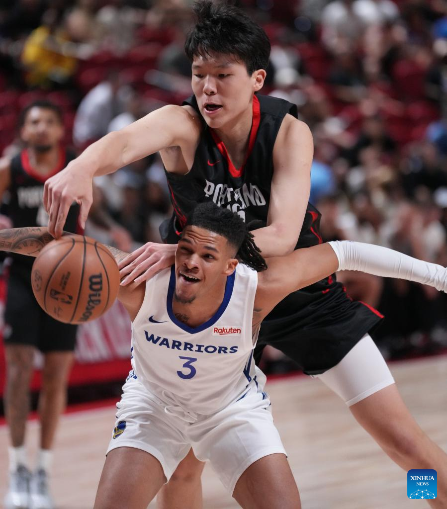 LAS VEGAS, United States, July 11 (Xinhua) -- Chinese center Yang Hansen scored 10 points, grabbed four rebounds, and dished out five assists to help the Portland Trail Blazers claim a 106-73 victory over the Golden State Warriors in an NBA summer league game on Friday.