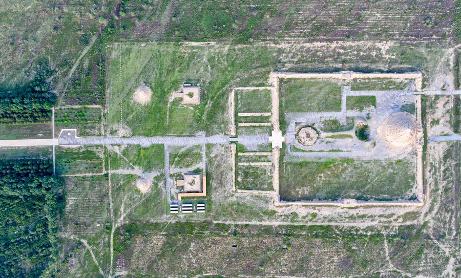An aerial drone photo taken on July 10, 2025 shows a Xixia imperial tomb in Yinchuan, northwest China's Ningxia Hui Autonomous Region. (Xinhua/Feng Kaihua)