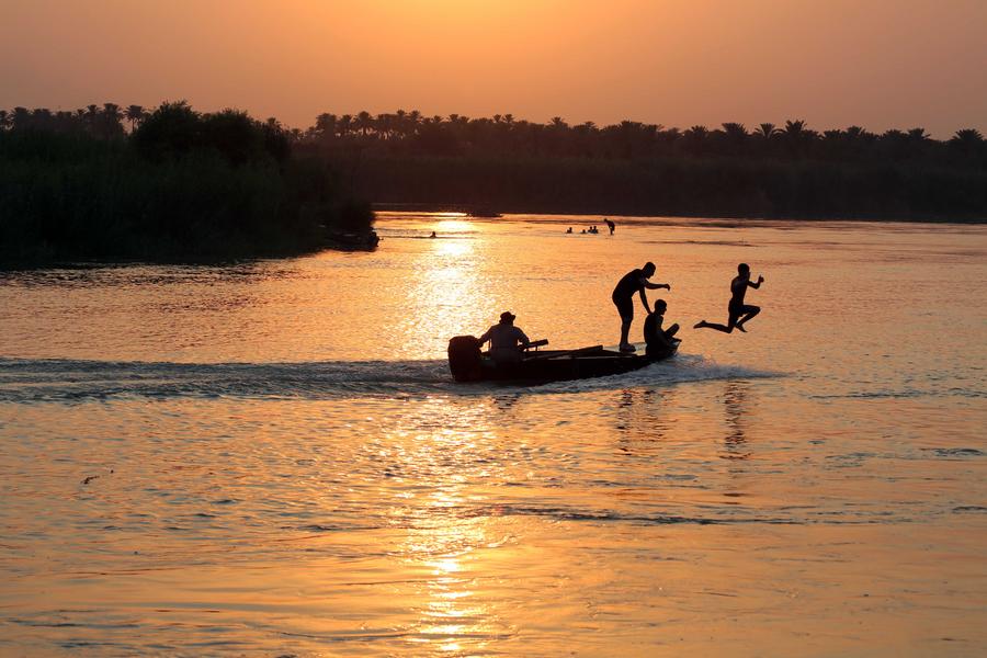 This photo taken on July 11, 2025 shows sunset scenery along the Tigris River in Baghdad, Iraq. (Xinhua/Khalil Dawood)People enjoy swimming in the Tigris River in Baghdad, Iraq at sunset time on July 11, 2025. (Xinhua/Khalil Dawood)People have fun on the bank of the Tigris River in Baghdad, Iraq at sunset time on July 11, 2025. (Xinhua/Khalil Dawood)■