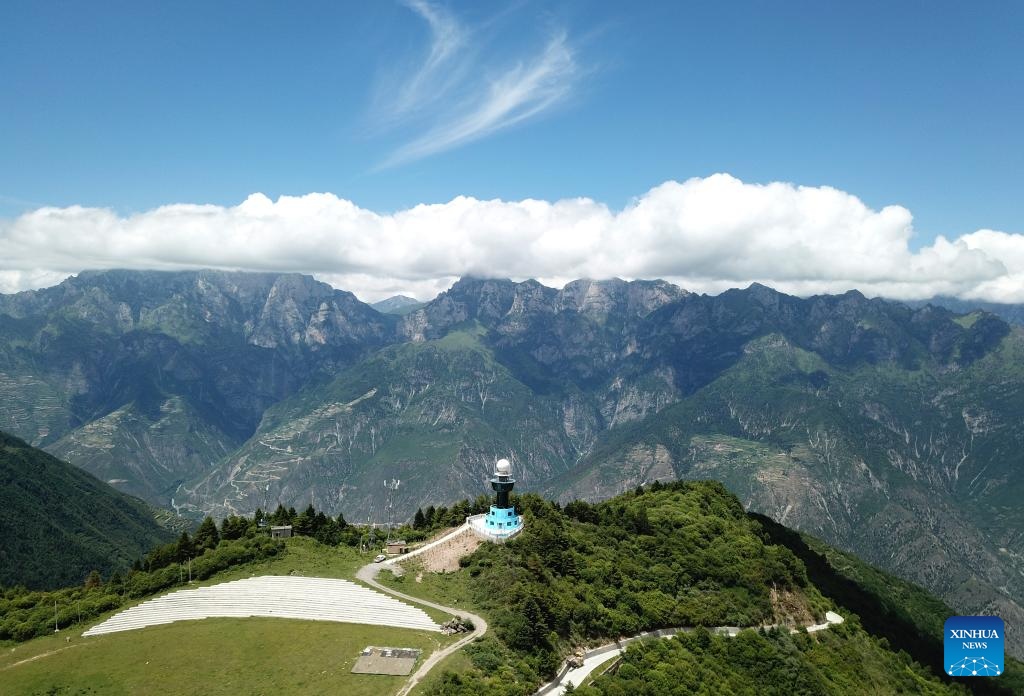 This aerial drone photo taken on July 12, 2025 shows the view of Lagashan Mountain in Zhouqu County, Gannan Tibetan Autonomous Prefecture, northwest China's Gansu Province. (Xinhua/Ma Ning)