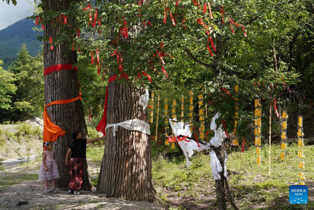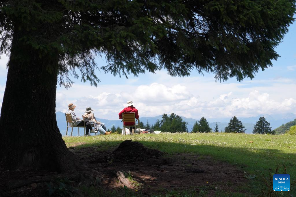 Children play at a scenic spot in Zhouqu County, Gannan Tibetan Autonomous Prefecture, northwest China's Gansu Province, July 12, 2025. (Xinhua/Ma Ning)