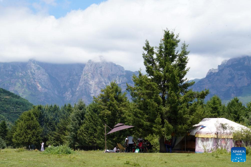 Tourists visit Lagashan Mountain in Zhouqu County, Gannan Tibetan Autonomous Prefecture, northwest China's Gansu Province, July 12, 2025. (Xinhua/Ma Ning)