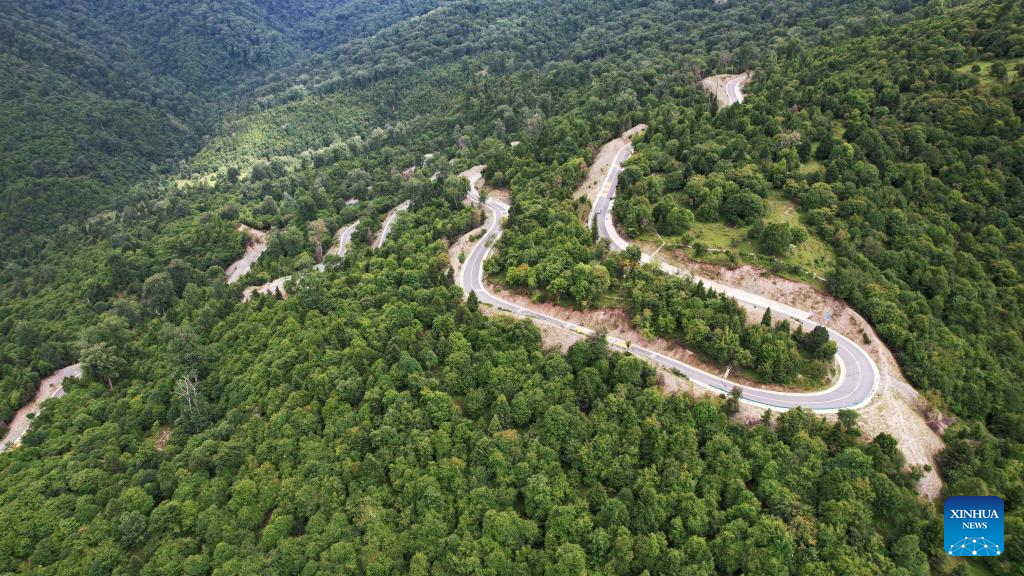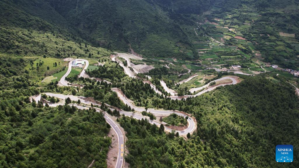 This aerial drone photo taken on July 12, 2025 shows a driveway in Zhouqu County, Gannan Tibetan Autonomous Prefecture, northwest China's Gansu Province. (Xinhua/Chen Bin)