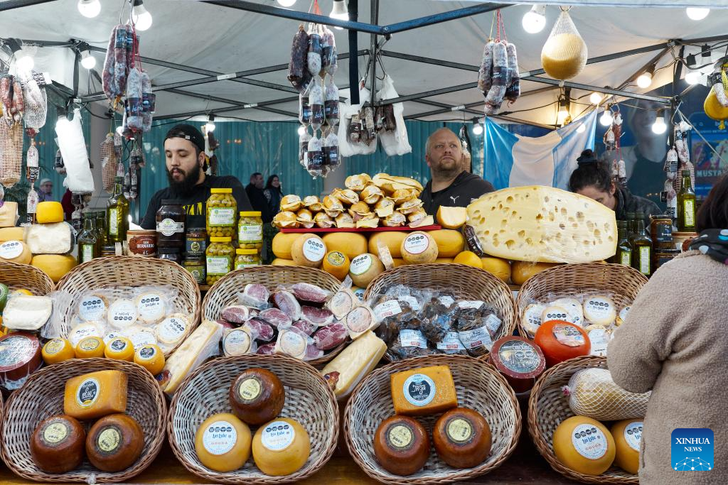 People visit a food festival in Buenos Aires, Argentina, on July 12, 2025. A two-day food festival was held to celebrate Argentina's Independence Day in Buenos Aires. (Xinhua/Meng Dingbo)