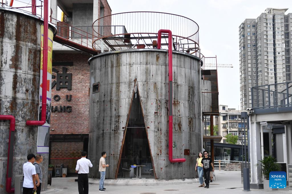 This July saw the reopening of this industrial heritage, with oil tanks and auxiliary facilities transformed into vibrant cafes, exhibition halls, art stores, among others, featuring a blend of industrial design and diverse consumer experiences that attract both residents and tourists. (Xinhua/Chen Zhenhai)