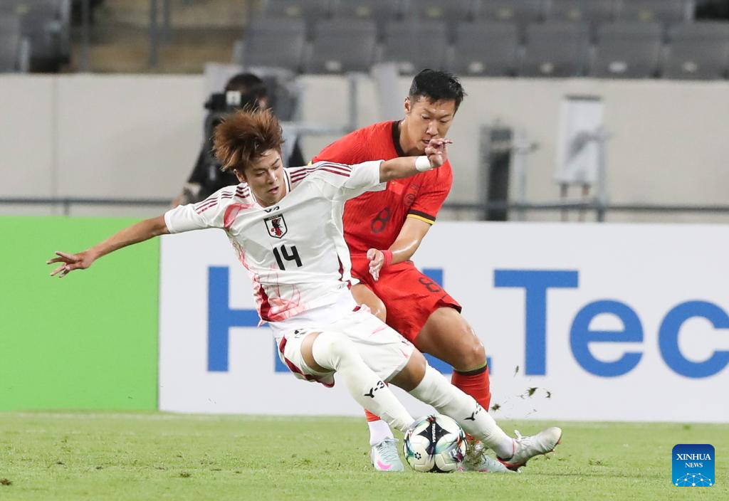Japan opened the scoring in the 11th minute when Mao Hosoya latched onto Satoshi Tanaka's pass to fire home with a quick turn and strike. Six minutes later, China's Zhang Yuning broke through one-on-one but saw his shot saved, with Wei Shihao sending the rebound wide.